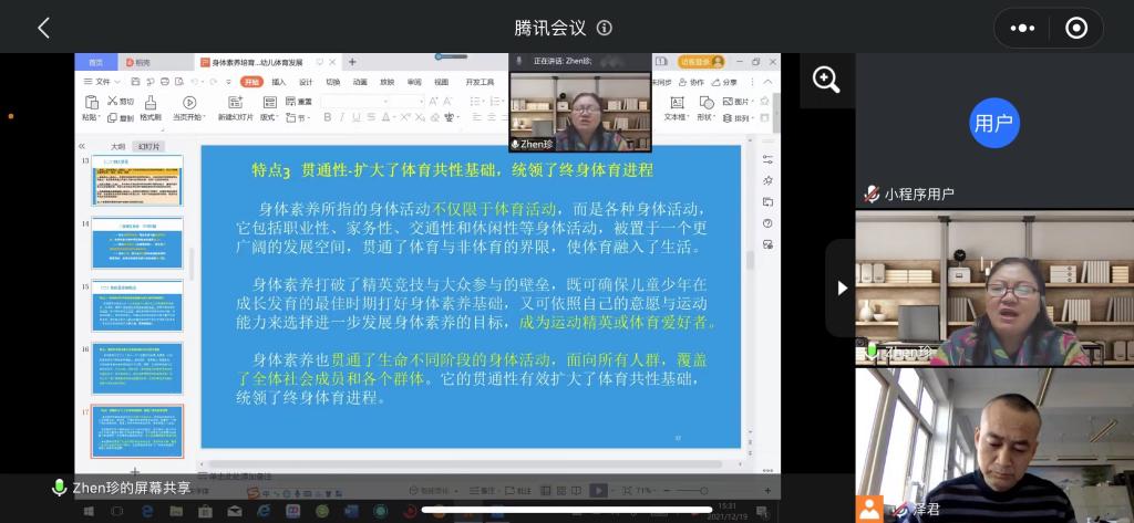 12月19日下午15:00-17:00,首都体育学院原副校长,天水师范学院第四轮重点学科“体育学”首席专家,教授、博士生导师王凯珍应邀为365Bet唯一入口师生作题为“身体素养视域下的幼儿体育培育发展”的学术报告,会议采用腾讯会议线上方式举行。