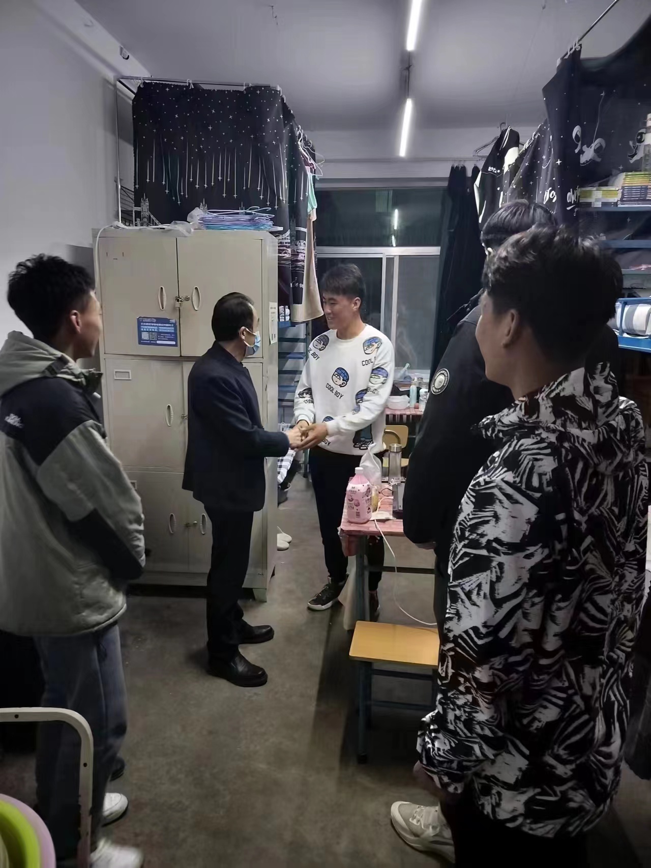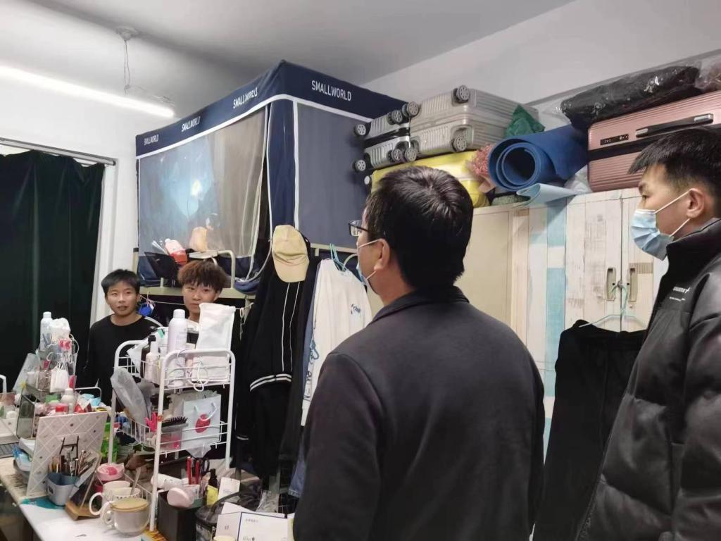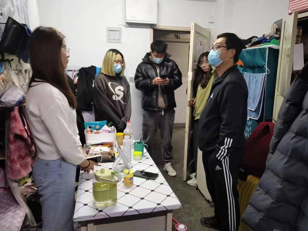 2023年2月25日晚,365Bet唯一入口班子成员和辅导员深入弘毅公寓、双馨公寓看望2022级学生,为学生送去关心和问候。