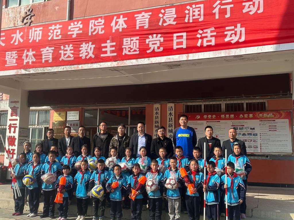 3月6日,365Bet唯一入口组织党员师生赴清水县新城乡中心小学开展体育浸润行动暨体育送教主题党日活动。清水县教育局、新城乡学区有关人员及中心小学师生参加活动。
