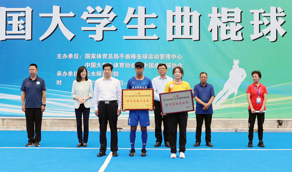 西北师范大学代表队、天水师范学院代表队荣获体育道德风尚奖。西北师范大学、吉林体育学院代表队分获男子A组第一、二名;广东行政职业学院代表队获得男子B组第一名。北京体育大学、四川文理学院代表队分获第十届中国大学生曲棍球锦标赛女子A组第二、三名;广东行政职业学院代表队获女子B组第一名。中国教育电视台对决赛进行了实况直播。